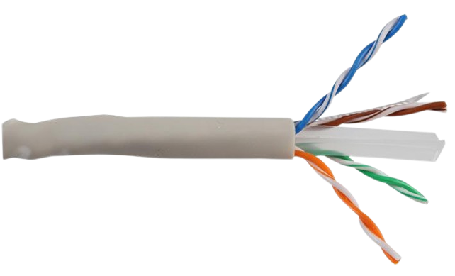 High-performance Cat 6 twisted-pair cable for Gigabit/10-Gigabit Ethernet networks, with solid copper conductors and shielding options for reliable data transfer up to 100m.