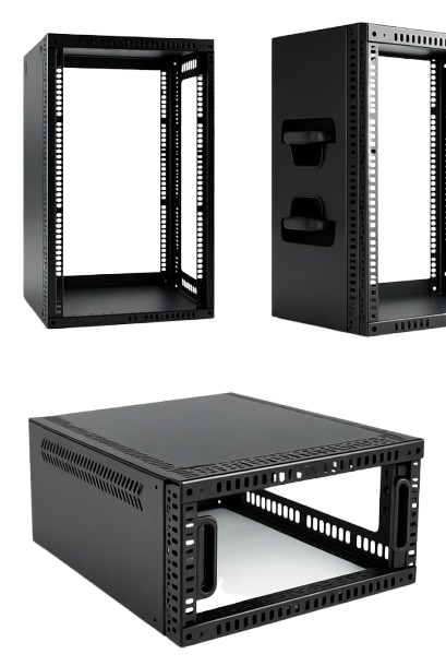 The 4U network rack enclosure is a low-profile, vented steel cabinet designed to house, secure, and cool up to 4U of standard 19-inch rackmount equipment, such as network switches, routers, patch panels, and AV devices, in areas with limited floor space. Constructed from heavy-duty cold-rolled steel (16-18 gauge) with a black powder-coated finish for durability and corrosion resistance, it features adjustable front and rear vertical mounting rails with square holes (M6 or 10-32 compatible), a lockable perforated front door (70% open for airflow), removable side panels with keyed locks, and integrated cable management ports at the top and bottom. With a maximum depth support of 16.5-20.5 inches and a static load capacity of 200 lbs, it's ideal for switch-depth applications in home offices, retail, or classrooms, promoting efficient heat dissipation while meeting PCI DSS security standards for sensitive data environments.