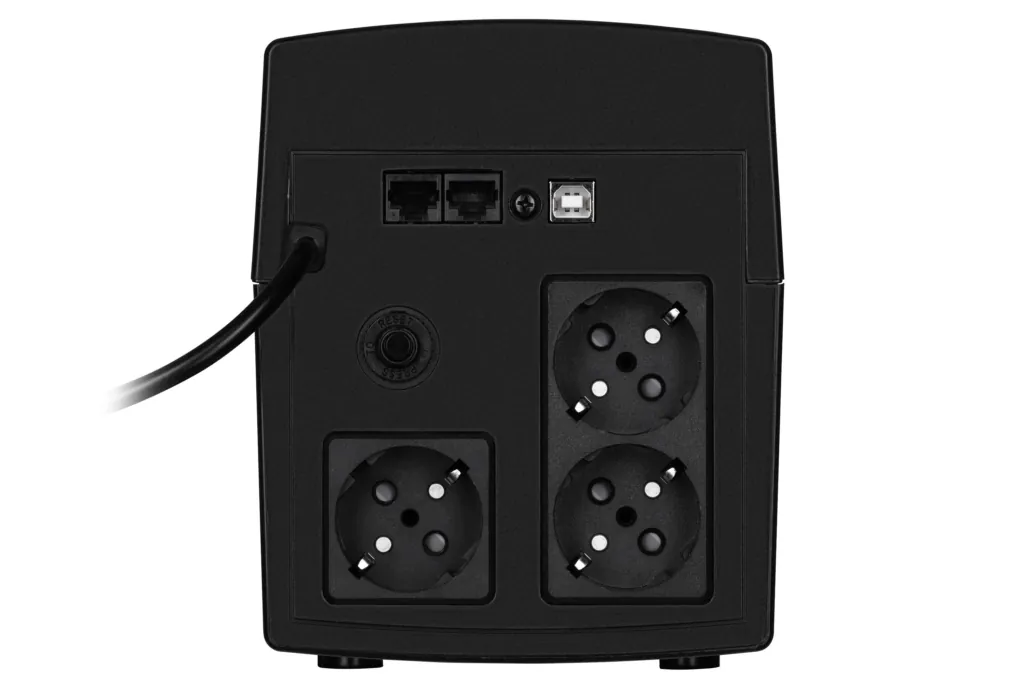 Reliable 1500VA/1000W line interactive UPS for home offices and gaming setups, featuring pure sine wave output, AVR voltage stabilization, surge protection, and up to 3-10 minutes backup time with user-replaceable batteries—ideal for protecting PCs, routers, consoles, and peripherals from power outages and surges in a compact tower design.